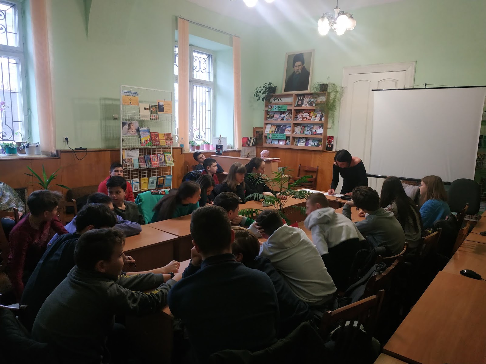 захід завідувачка філією В. Кугут і запроронувала присутнім на заході учням ліцею №1
